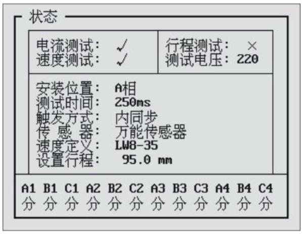 答:選擇【測試】-【合閘測試】,儀器液晶顯示屏的最下方有12斷口的實時狀態顯示。屏幕顯示如下圖: