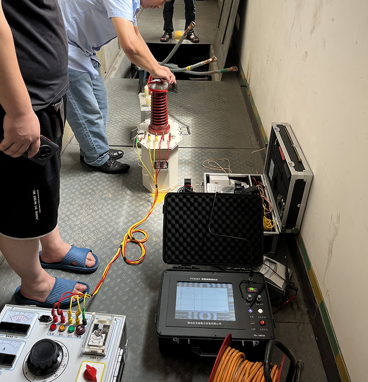 此次客戶那邊遇到的麻煩是電纜在運輸電過程中出現(xiàn)了供不上電情況,客戶那邊先自身對電纜做了基本的檢查,一時間也找不準(zhǔn)問題,于是就找到我司去幫忙找出電纜故障問題。我司趕到現(xiàn)場后,先咨詢了客戶相關(guān)的電纜類型的問題,如:電纜是否帶電,是帶鎧電纜還是不帶鎧的等等,摸清電纜的類型等一些相關(guān)信息后,我司技術(shù)人員便開始著手采取相應(yīng)的故障檢測措施了,首先我們做的是默認(rèn)的“低壓脈沖法”來檢測電纜故障情況,我們先是通過波形采樣,得到一個比較適合分析的波形后,然后對波形進行分析,從波形我們可以知曉電纜的大致長度,以及故障點發(fā)生的大致一個區(qū)間位置,然后對那個故障區(qū)間位置進行更進一步的甄別查找,這樣便很大程度地減輕了工作人員查找故障的工作量,不過這次的電纜故障查找有點特殊,通過“低壓脈沖法”并不能很好地找出故障問題,于是后面又采取了“高壓閃絡(luò)法”進行檢測,高壓閃絡(luò)過程,便需要利用到高壓升壓試驗裝置來對電纜進行升壓,從而來得到更明顯的波形。